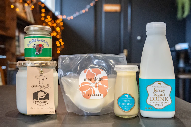 「八丈島乳業」直営の「八丈島ジャージーカフェ」。放牧酪農でのびのびと暮らすジャージー牛のミルクを使った、スイーツやドリンクを堪能できます。