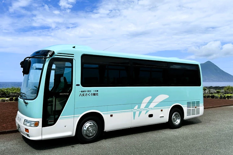 ツアーは、八丈島観光協会からバスに乗り込んで出発。